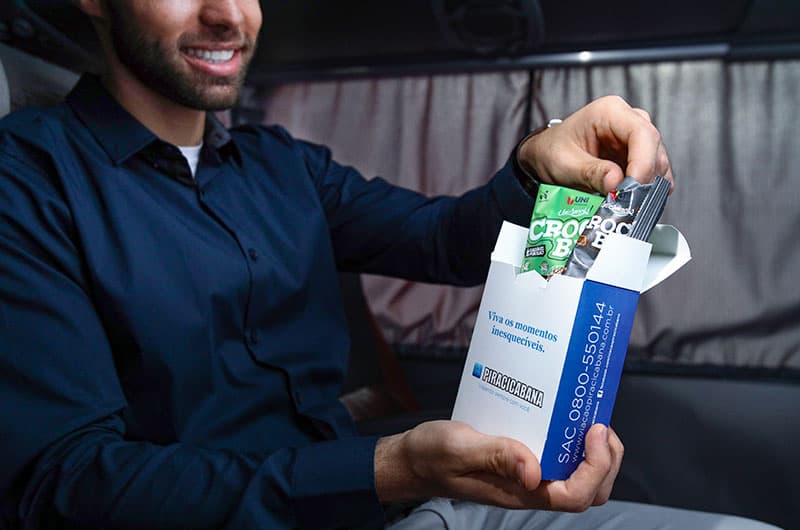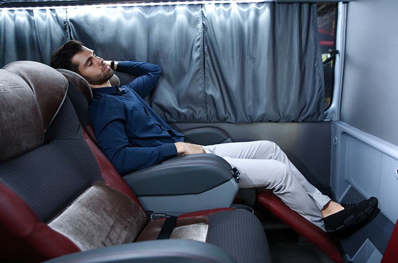 Tenha a melhor experiência de viagem em um ônibus moderno, com poltronas que te abraçam. Exclusivo serviço de bordo e muito mais conforto e tranquilidade para você, pagando menos.
